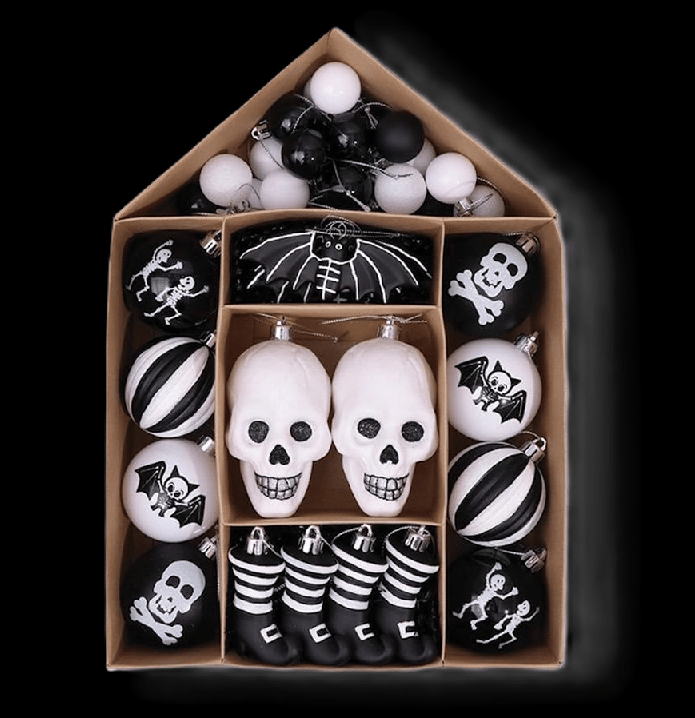 This is a pack of approx 40 ornaments in varying sizes. All black and white themed.
